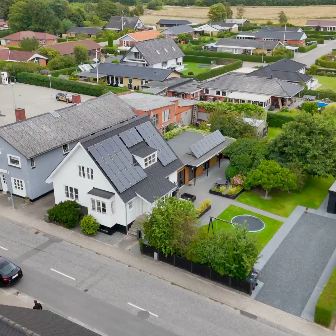 Her venter en moderne og rummelig villa, der kombinerer funktionalitet og hygge med en attraktiv beliggenhed tæt på hverdagens fornødenheder. Villaen rummer tre plan og er indrettet med fokus på familieliv.