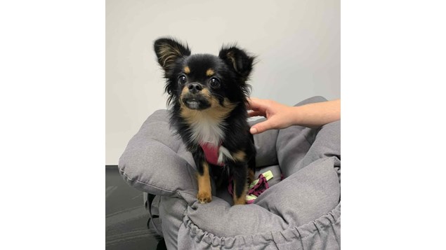 Freja fik masser af kærlighed af personalet både før, under og efter behandlingen – og med sin egen kurv med som tryg base, tog hun det hele med ophøjet ro