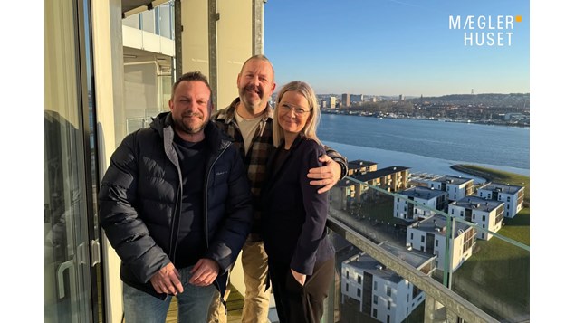 Vi har solgt endnu en lejlighed i det populære byggeri Horisonten - her ses Palle med de glade købere af lejligheden