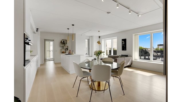 Træd ind i denne eksklusive lejlighed beliggende på havnefronten i Nørresundby, hvor du bliver mødt af en kombination af moderne komfort og en eftertragtet beliggenhed.