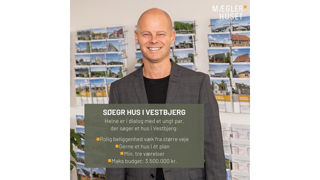Hos Mæglerhuset har vi netop solgt et hus i Vestbjerg, som et andet ungt par desværre gik forgæves til. De er fortsat på jagt efter deres næste hjem i byen.