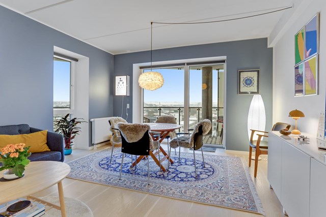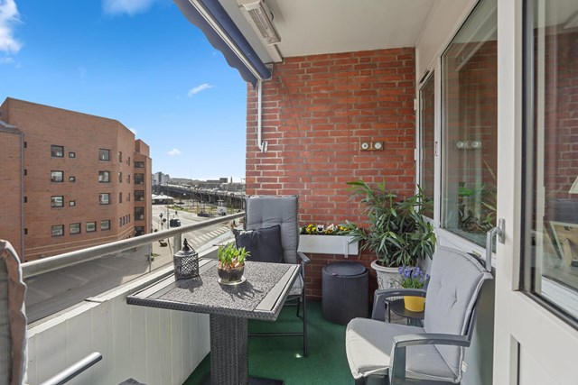 Mæglerhusets udvalg rummer også en indflytningsklar fireværelses lejlighed på Østerbrogade 26 i Nørresundby. Denne lejlighed byder på 115 kvm af moderniseret perfektion med to udsigtsaltaner med udsigt over Limfjordsbroen. Den rummelige bolig ligger tæt på indkøbsmuligheder, kulturelle oplevelser og nem adgang til Aalborg. Se den fine lejlighed her.