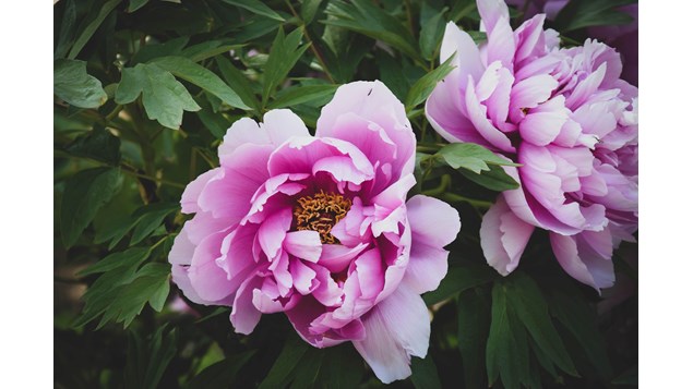 Find et lunt sted, i fuld sol til pæonerne, og et sted i sol eller halvskygge til bonderoserne. Begge stauder skal helst ikke udtørre i forårsperioden.
