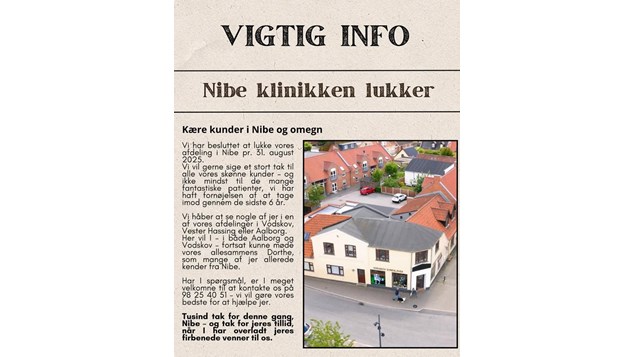 Vi har besluttet at lukke vores afdeling i Nibe pr. 31. august 2025.